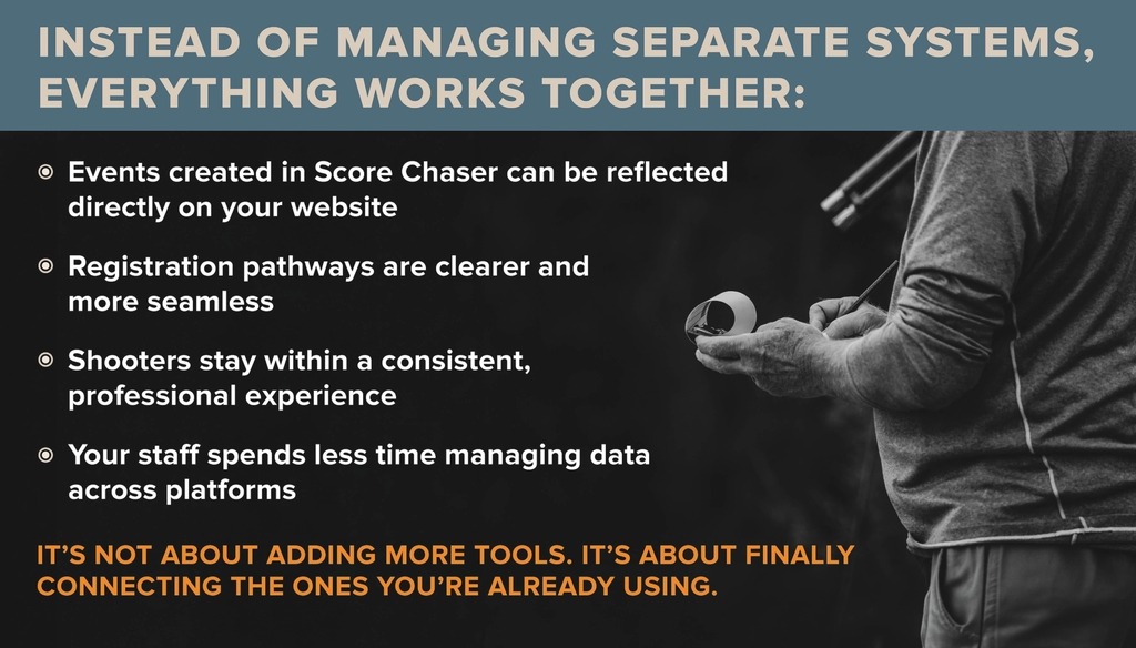 Score Chaser has quickly become a go-to platform for managing scoring and event participation in the sporting clays world. But for most clubs, it lives separately from their website.
