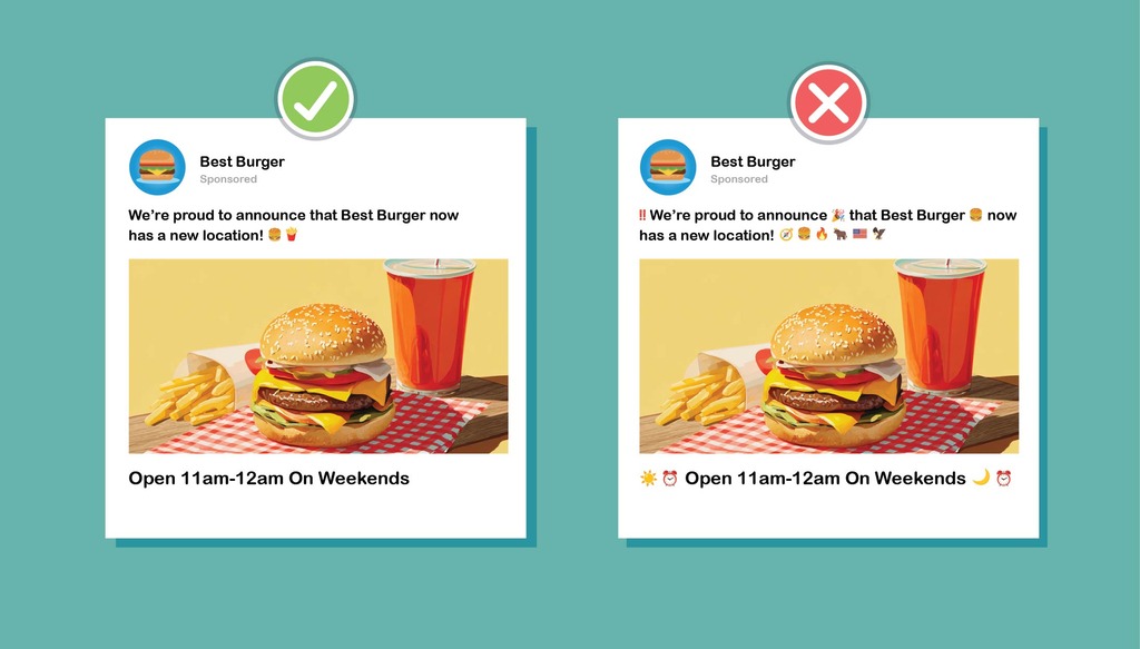 - Emojis must clearly relate to the product, service, or offer