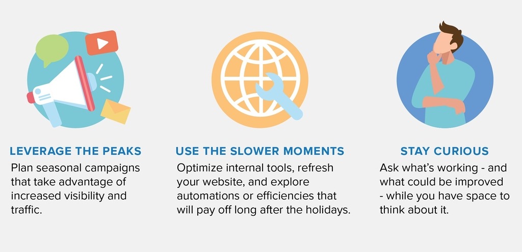 - Use the slower moments. Optimize internal tools, refresh your website, and explore automations or efficiencies that will pay off long after the holidays.
